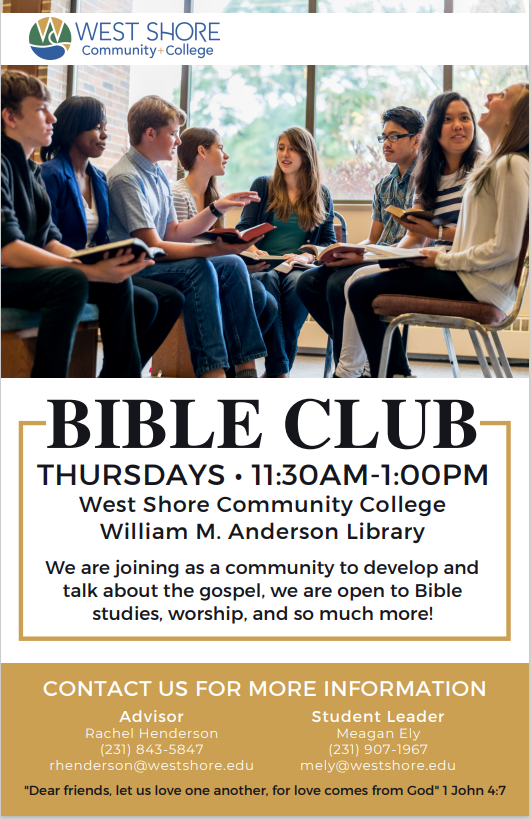 Student Leader: Meagan Ely, mely@westshore.edu, 231-907-1967